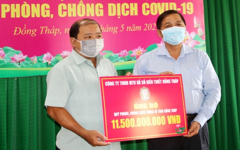 Chiều 18-5, Ủy ban MTTQ Việt Nam tỉnh Đồng Tháp tiếp nhận 11,5 tỷ đồng từ Công ty TNHH Một thành viên Xổ số kiến thiết tỉnh Đồng Tháp ủng hộ Quỹ phòng, chống dịch Covid-19.