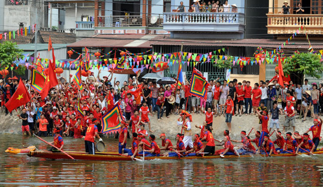 Mỗi thôn có hai thuyền đua.