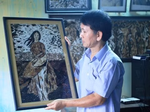 Tìm gặp chủ nhân của những bức tranh độc đáo này, tôi đã lạc vào một thế giới khác. Nét trầm tư trên gương mặt của người nghệ nhân không chuyên này đã nói lên tất cả những suy tư về nghề.