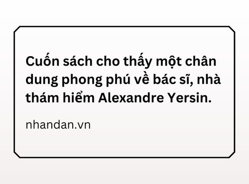 Với những đóng góp như vậy, cuốn sách gọn gàng về Alexandre Yersin kể trên lại có thể mở ra một thế giới trải nghiệm đầy thú vị, bất ngờ về thiên nhiên, đời sống đồng bào nhiều nơi ở cao nguyên Lang-Bian cũng như những vùng đất chung quanh.