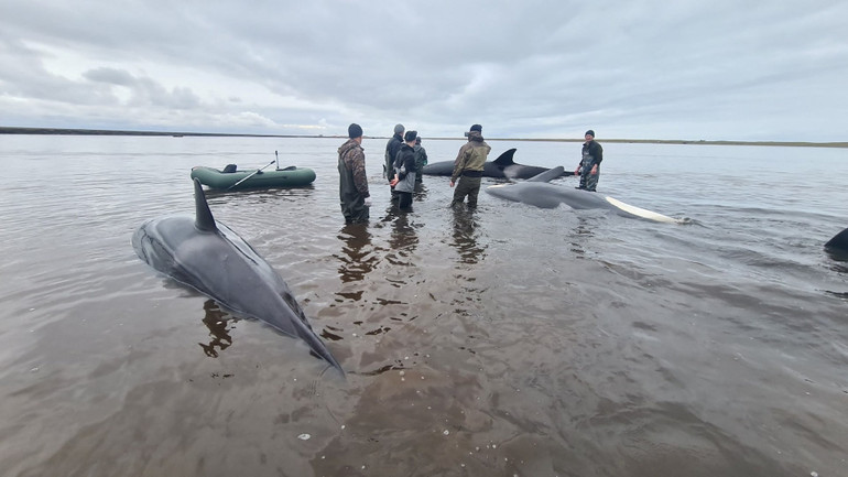 Trước đó, Bộ Tình trạng khẩn cấp của Nga đã thông báo về việc có một đàn cá voi sát thủ bị mắc kẹt tại một cửa sông tại vùng Viễn đông. Ngay lập tức, hơn 30 nhân viên cứu hộ đã được huy động, sử dụng thuyền nhỏ để cố gắng hỗ trợ đẩy 4 cá thể cá voi này ra vùng nước sâu hơn.