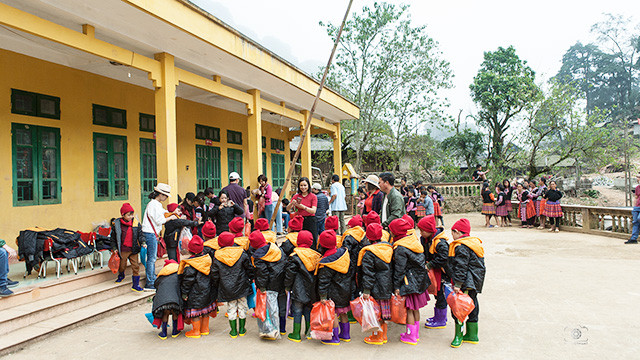 Đập vào mắt họ là hình ảnh những đứa trẻ leo đá tai mèo đi học. Nhiều đứa ngơ ngác rồi trầm trồ nhìn những đôi giày Nike, Adidas băng băng leo qua lưỡi đá sắc như dao. Mọi người lại nhìn đến những đôi dép tổ ong đã mỏng vẹt đế, tấm áo học sinh mốc đen đường chỉ của chúng. Bàn tay, đầu gối, ngón chân đứa nào đứa nấy chằng chịt vết đá cắt. Mọi người hội ý nhanh, tặng đám trẻ ủng cao-su. Có người góp ý: Tặng chúng áo khoác, vùng này sương giá lạnh quá! Mọi người ào ào góp ý, mỗi người thêm một tý… cuối cùng thảy đều thống nhất là phải đánh một xe hàng lên mới thỏa đáng. Vậy là xe của chúng tôi lên đường.