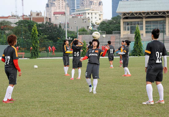 Các cầu thủ nữ đội tuyển bóng đá Việt Nam tập luyện. Ảnh Trần Hải
