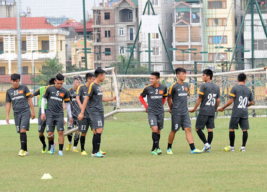 Các cầu thủ U23 Việt Nam trên sân tập. Ảnh Trần Hải