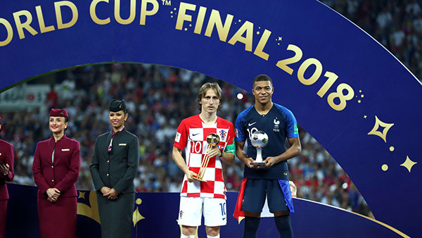 Những giải thưởng cá nhân của FIFA World Cup 2018 cũng được trao sau đó với danh hiệu Cầu thủ trẻ xuất sắc nhất thuộc về Kylian Mbappe; Quả bóng Vàng cho cầu thủ xuất sắc nhất thuộc về tiền vệ Luka Modric của Croatia; Găng tay Vàng được trao cho thủ môn Thibaut Courtois của Bỉ và Vua phá lưới thuộc về Harry Kane của đội tuyển Anh với sáu bàn thắng.