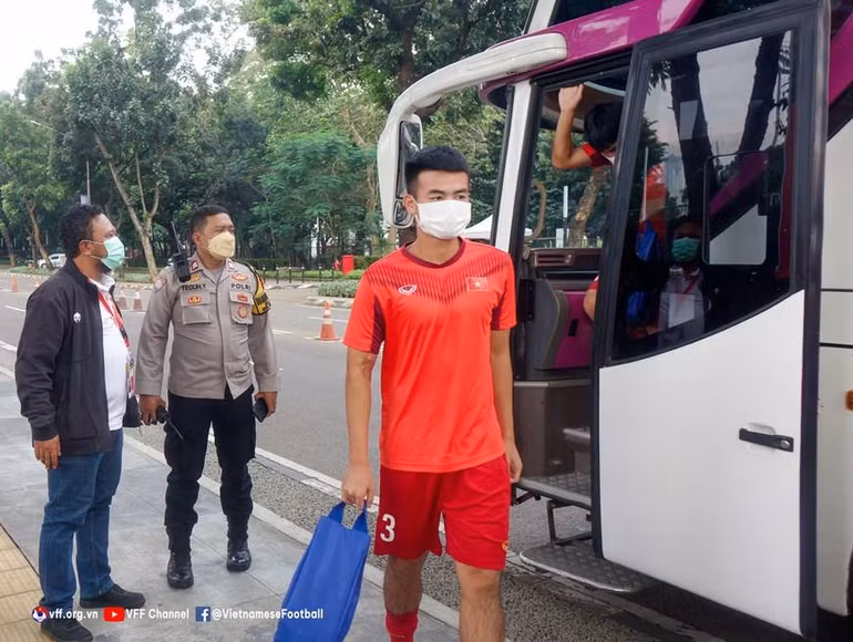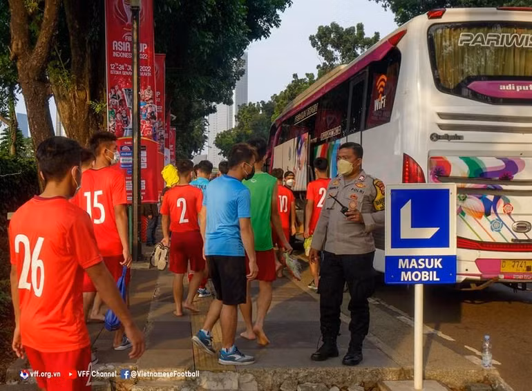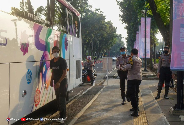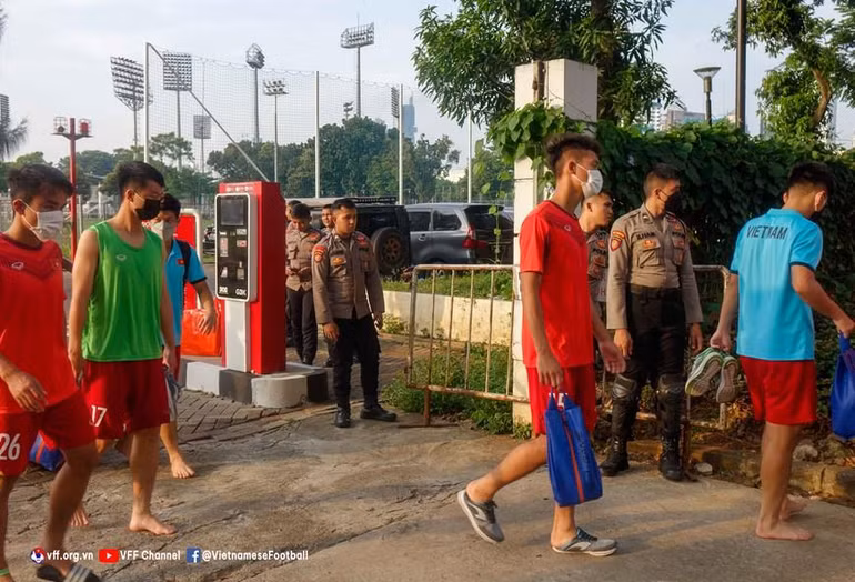 Các cầu thủ U19 Việt Nam được hộ tống rời sân tập. (Nguồn: VFF)