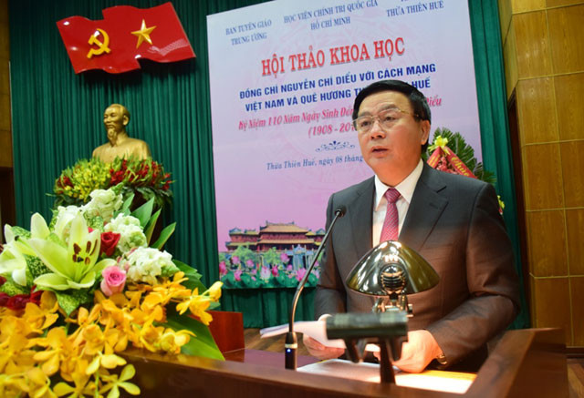 GS,TS Nguyễn Xuân Thắng, Bí thư T.Ư Đảng, Giám đốc Học viện Chính trị quốc gia Hồ Chí Minh, Chủ tịch Hội đồng Lý luận Trung ương và các đồng chí: Lê Trường Lưu, Ủy viên T.Ư Đảng, Bí thư Tỉnh ủy, Chủ tịch HĐND tỉnh Thừa Thiên - Huế; Lê Mạnh Hùng, Phó Trưởng Ban Tuyên giáo Trung ương; PGS, TS Lê Quang Lý, Phó Giám đốc Học viện Chính trị quốc gia Hồ Chí Minh; PGS,TS Lê Văn Lợi, Vụ Trưởng Vụ Quản lý Khoa học - Học viện Chính trị quốc gia Hồ Chí Minh dự và chủ trì hội thảo.