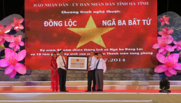 Tại buổi lễ, đồng chí Trương Hòa Bình đã trao Bằng di tích Quốc gia đặc biệt tuyến đường Trường Sơn – đường Hồ Chí Minh cho lãnh đạo tỉnh Hà Tĩnh. Hà Tĩnh có hai địa điểm: Ngã ba Đồng Lộc, huyện Can Lộc và Chỉ huy sở Chiến dịch 559 tại xã Hương Đô, Hương Khê trên tuyến đường này.