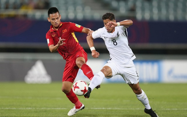 Hồ Tấn Tài (trái) cùng Quang Hải, Văn Hậu hay Hoàng Đức đã làm nên lịch sử cho bóng đá Đông - Nam Á với điểm số đầu tiên tại U20 World Cup 2017, sau trận hòa 0-0 với U20 New Zealand. (Ảnh: FIFA)