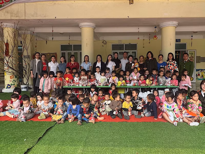 Tổ chức Chương trình tuyên truyền pháp luật về phòng, chống mua bán người, buôn bán ma túy tại Trường Phổ thông dân tộc bán trú Trung học cơ sở xã Na Sang, huyện Mường Chà. Trao quần áo, bánh kẹo, dép, đồ dùng học tập tặng các cháu của 2 trường mầm non xã Na Sang.