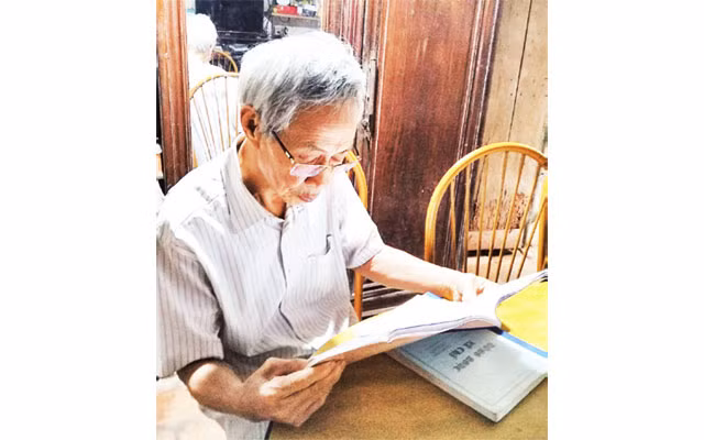* Ông Phạm Quang Đại, người dày công nghiên cứu, sưu tập về sử làng Đông Ngạc. Ảnh: HÒA KHÁNH