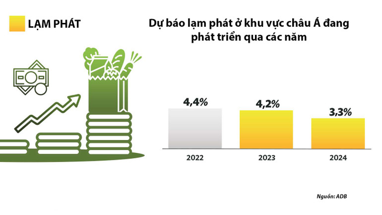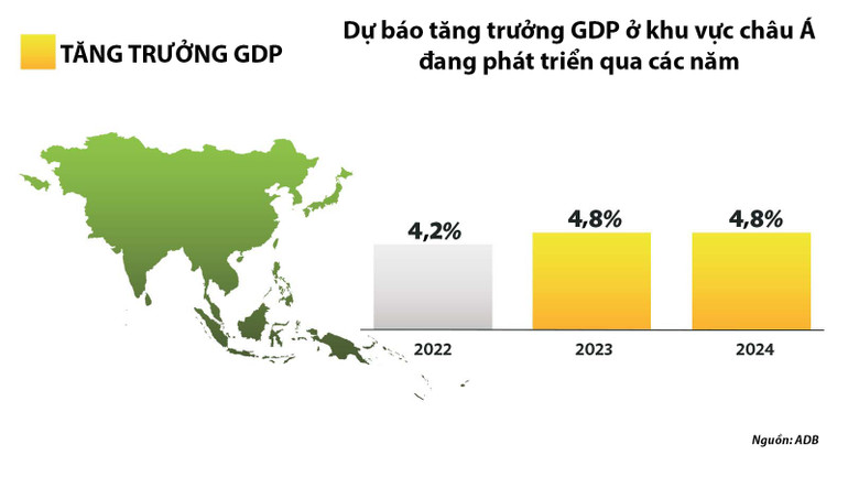 Nếu không tính Trung Quốc, khu vực châu Á đang phát triển dự kiến sẽ tăng trưởng 4,6% trong năm nay và 5,1% vào năm 2024. Trong khi đó, lạm phát của khu vực được dự báo sẽ giảm dần về mức trước đại dịch, xuống mức 4,2% trong năm 2023 và 3,3% trong năm 2024 sau khi lên tới 4,4% vào năm ngoái.