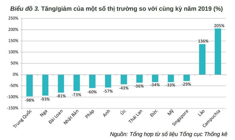 Ngoài ra, khách từ Nga chỉ đạt 2,7 nghìn lượt (-93%). Báo cáo của Tổng cục Du lịch lý giải nguyên nhân chính của sự sụt giảm là do xung đột Nga - Ukraine kéo dài, làm gián đoạn kết nối hàng không cũng như thị trường du lịch.