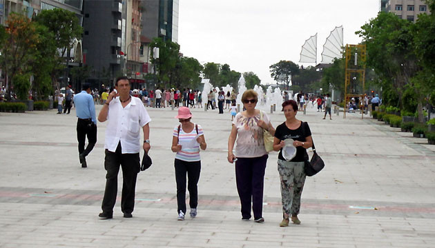 Nhiều khách du lịch nước ngoài tỏ ra thích thú với phố đi bộ Nguyễn Huệ.