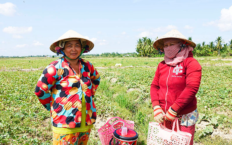 Những người phụ nữ Khmer ở cánh đồng Bình Minh.