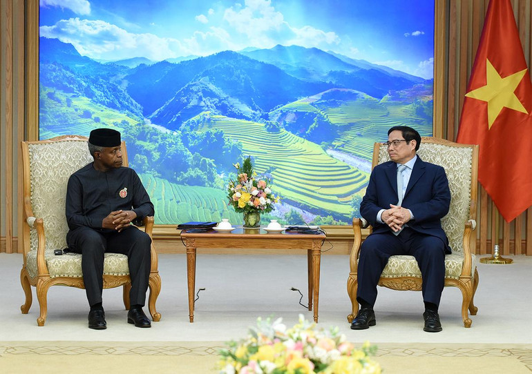 Nhân dịp này, Thủ tướng cũng thông tin tới Phó Tổng thống Nigeria về các thành tựu của công cuộc đổi mới, cũng như các mục tiêu phát triển chiến lược mà Đại hội lần thứ XIII của Đảng đề ra.