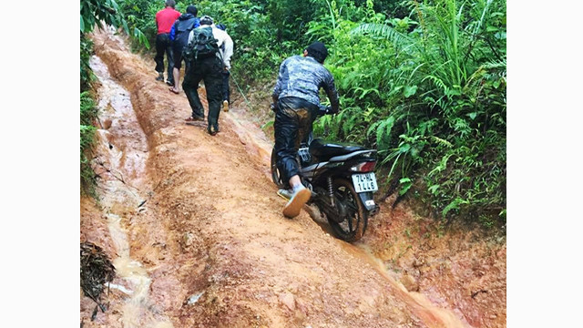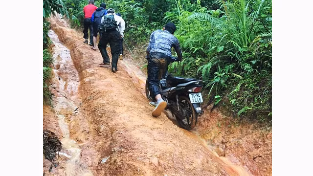 Sự vất vả trên một đoạn đường xuống cấp trầm trọng thuộc Tỉnh lộ 587 đoạn từ thôn Tà Rẹc đến Tà Mên (xã Ba Nang, huyện ĐaKrông).