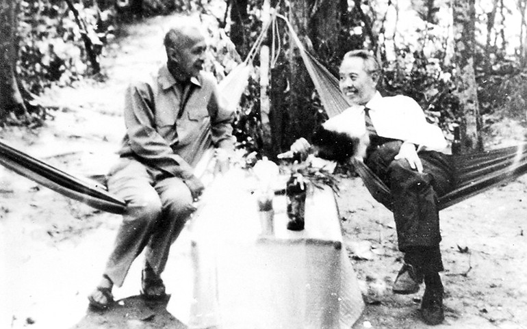 Bác ôm hôn tôi thắm thiết rồi Bác khoác tay nói vui vẻ, thân mật mà dứt khoát: “Các chú đi xa hàng nghìn cây số ra đây, tôi đến thăm trước mới là phải chứ!”.