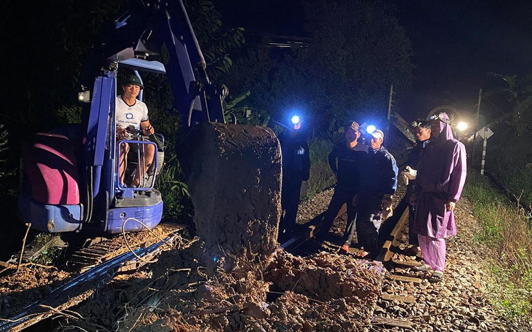 Sáng sớm nay, sau khi mưa giảm, đường sắt đã huy động nhân lực, máy móc tiếp cận hiện trường các khu vực sạt lở nặng để triển khai phương án khắc phục, nỗ lực thông đường trong thời gian sớm nhất.