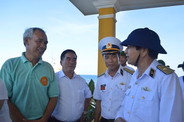Chuẩn Đô đốc Ngô Văn Thuân, Phó Chủ nhiệm Chính trị Quân chủng Hải quân, gặp gỡ thân nhân cán bộ, chiến sĩ trên đảo Đá Tây.