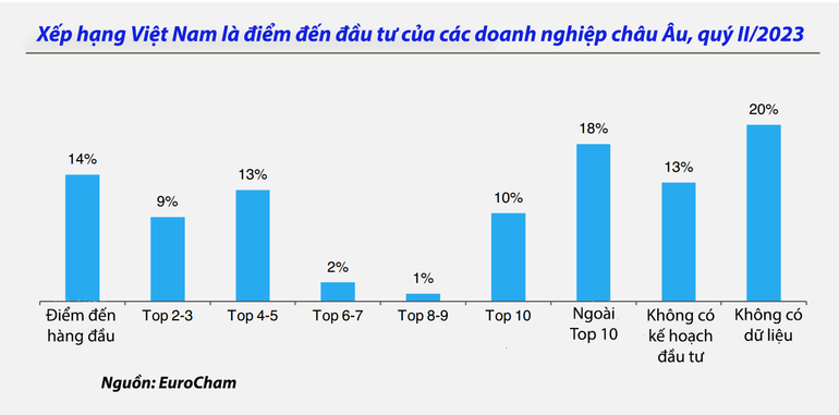 Dù có tổng cộng 40% doanh nghiệp bày tỏ không có kế hoạch tăng FDI, đánh dấu mức tăng 4% so với BCI trước đó, báo cáo cho thấy Việt Nam vẫn củng cố vị trí là 1 trong 5 điểm đến đầu tư hàng đầu của hơn 1/3 doanh nghiệp châu Âu được khảo sát, cho thấy sức hấp dẫn lâu dài của đất nước.