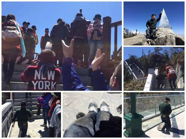 “Bắt đầu phải bỏ xe lăn lại phía sau để lên đỉnh, tôi phải qua khoảng hơn 600 bậc đá nữa. Những bậc đá đó không thấp và dễ đi như ở cực Bắc Lũng Cú, mà cao khoảng 20 cm, và sâu chỉ khoảng 15 cm.
