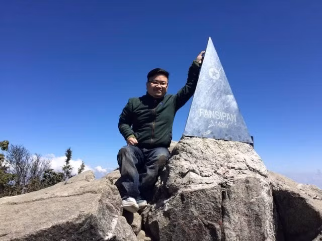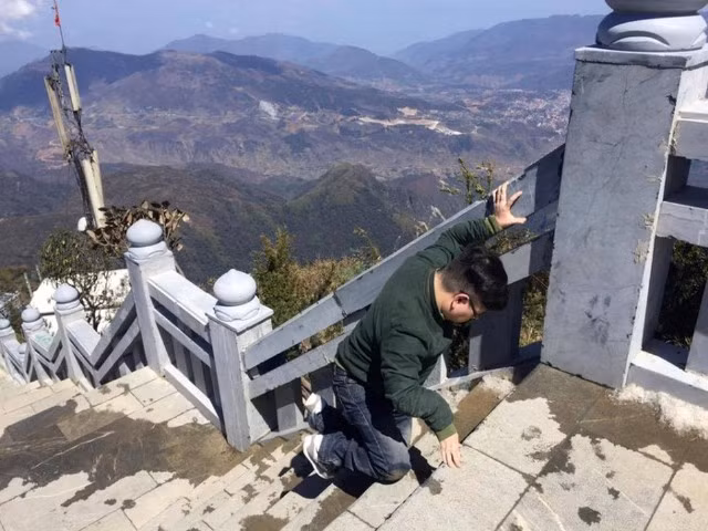 Mất khoảng hơn 1 tiếng để tôi bò lên đỉnh Fansipan với tiếng vỗ tay và hò hét của những du khách đi cùng. Họ chụp ảnh cùng, bắt tay chúc mừng, nhưng tôi không còn nhìn thấy gì nữa, tai ù đi và mắt nhòe cay.”