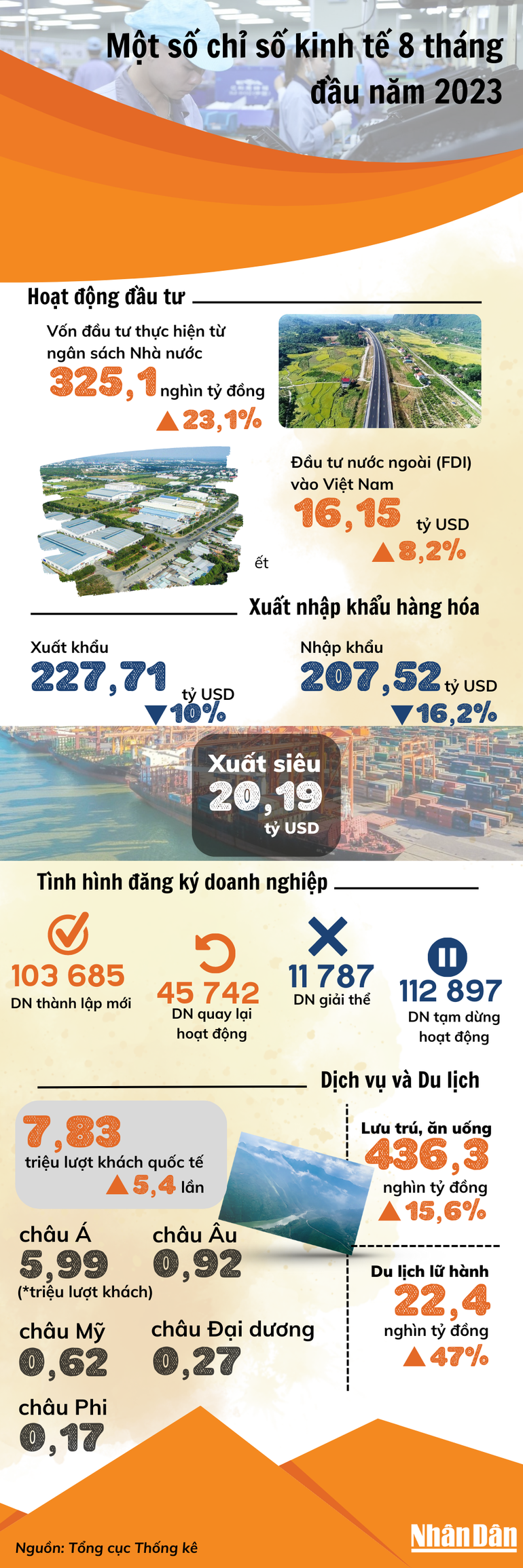Bên cạnh những điểm sáng trong lĩnh vực du lịch và dịch vụ, nền kinh tế Việt Nam đánh dấu sự khởi sắc trở lại trong thu hút vốn đầu tư trực tiếp từ nước ngoài (FDI), với tổng số vốn đầu tư đạt gần 18,15 tỷ USD trong 8 tháng đầu năm 2023, tăng 8,2% so với cùng kỳ năm trước.