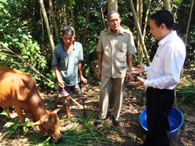 Đại diện Hội VNASMA trao bò hỗ trợ sinh kế cho nạn nhân bom mìn huyện Duy Xuyên (Quảng Nam).