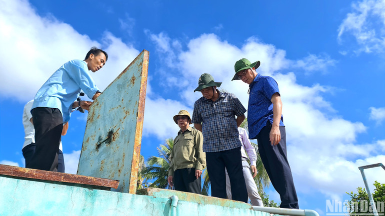 | Chủ tịch Uỷ ban nhân dân tỉnh Cà Mau kiểm tra việc vận hành tại Trạm cấp nước liên xã Biển Bạch và Tân Bằng (huyện Thới Bình). |