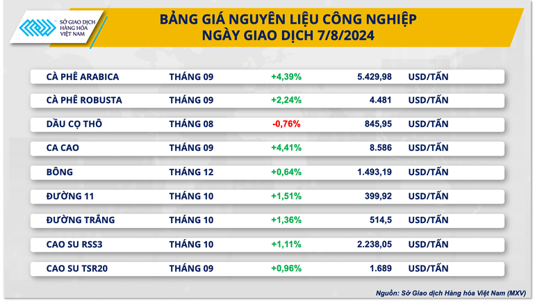 Theo Sở Giao dịch hàng hóa Việt Nam (MXV), thị trường hàng hóa nguyên liệu thế giới biến động trái chiều trong ngày hôm qua (7/8).