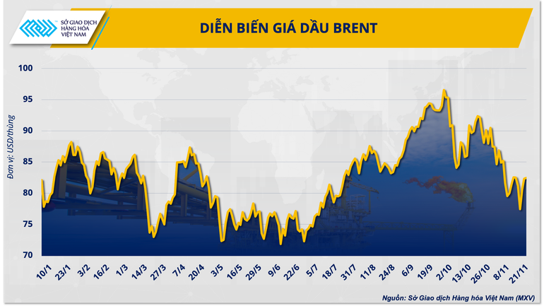 Theo dữ liệu từ Sở Giao dịch Hàng hóa Việt Nam (MXV), kết thúc ngày giao dịch 21/11, giá dầu WTI giảm 0,08% xuống 77,7 USD/thùng. Dầu Brent tăng nhẹ 0,16% lên 82,45 USD/thùng.