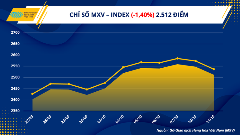 Theo Sở Giao dịch Hàng hóa Việt Nam (MXV), thị trường hàng hóa đỏ lửa ngày thứ 2 liên tiếp với lực bán hoàn toàn áp đảo trên cả 4 nhóm hàng hóa nguyên liệu. Chỉ số MXV-Index giảm 1,4% xuống mức 2.512 điểm.