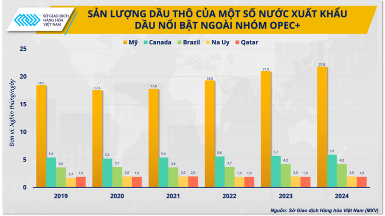 Giá dầu đã có xu hướng giảm từ giữa năm 2024 và chỉ tăng theo chu kỳ trong ngắn hạn trước một đợt giảm sâu. Tương lai giá dầu trước mắt các nước thuộc Tổ chức các nước xuất khẩu dầu mỏ và đồng minh (OPEC+) chưa có “lối thoát” khi xét đến chính sách của các nước ngoài OPEC.