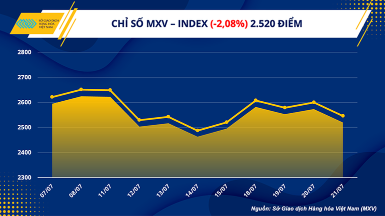 Mặc dù tất cả chỉ số MXV-Index của 4 nhóm nguyên liệu đều kết thúc phiên với mức điểm thấp hơn, tuy nhiên dòng tiền đầu tư đã tăng lên mạnh mẽ tại cả 4 nhóm. Điều này giúp giá trị giao dịch toàn Sở phục hồi mạnh mẽ lên mức hơn 3.700 tỷ đồng, tương đương với mức tăng khoảng 23%.