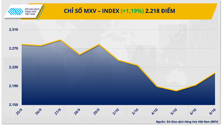 Phải sau nửa tháng, chỉ số hàng hóa này mới ghi nhận có hai ngày tăng giá liên tiếp. Giá trị giao dịch toàn Sở cũng tăng nhẹ, đạt mức 3.400 tỷ đồng.