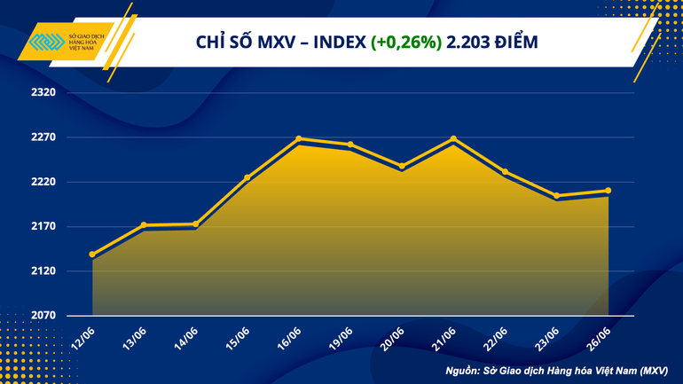 Tuy nhiên, lực mua có phần chiếm ưu thế; kết hợp với việc phần lớn các mặt hàng chốt ngày hôm qua chỉ dao động quanh mức tham chiếu với biên độ hẹp, đã thúc đẩy chỉ số MXV-Index đảo chiều tăng nhẹ 0,26% lên 2.203 điểm.