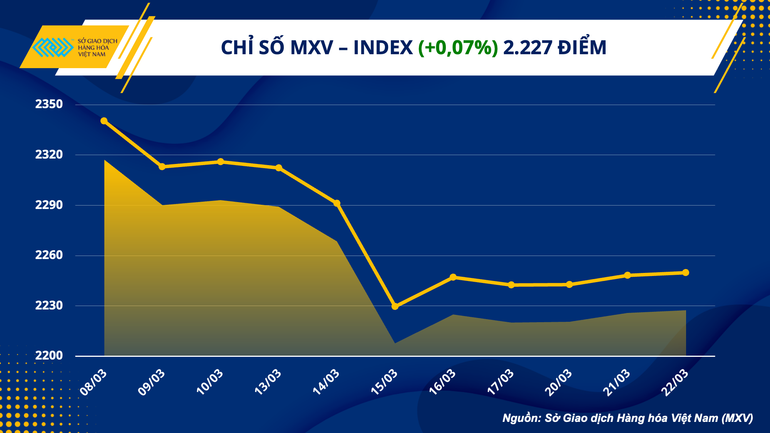 Kết thúc phiên giao dịch ngày 22/3, ngoại trừ quặng sắt, tất cả các mặt hàng còn lại trong nhóm đều kết thúc trong sắc xanh. Tâm điểm của thị trường hướng về cuộc họp của Cục Dự trữ Liên bang Mỹ (FED) vào đêm qua, sau những rủi ro hệ thống ngân hàng gây ra biến động mạnh trên thị trường trước đó. Kim loại quý đang phát huy vai trò trú ẩn, khi bạc và bạch kim ghi nhận mức tăng lần lượt là 1,61% lên 22,78 USD/ounce và 1,05% lên 987 USD/ounce.