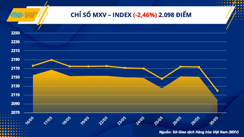 Trong đó, các mức giảm rất sâu của nhóm năng lượng và nông sản, đã đóng góp chính vào đà lao dốc của toàn thị trường. Tuy nhiên, giá trị giao dịch toàn Sở vẫn ổn định ở mức trên 4.500 tỷ đồng.