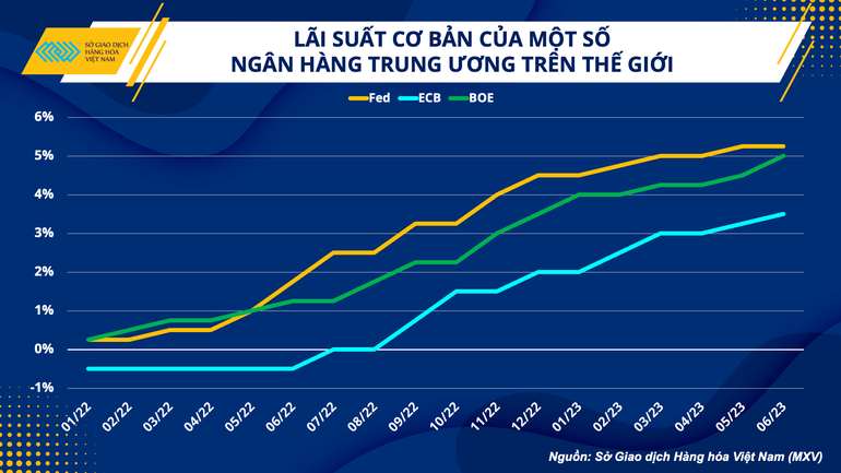Cụ thể, Ngân hàng Trung ương châu Âu (ECB) đã có lần tăng lãi suất lần thứ 8 liên tiếp trong tháng 6/2023, đưa lãi suất từ mức âm 0,5% lên mức 3,5% chỉ trong vòng hơn 1 năm. Đối với Ngân hàng Trung ương Anh (BOE), tốc độ tăng lãi suất thậm chí còn nhanh hơn, với 13 lần liên tiếp kể từ tháng 11/2022, từ mức 0,1% lên mức 5% vào tháng 6/2023.