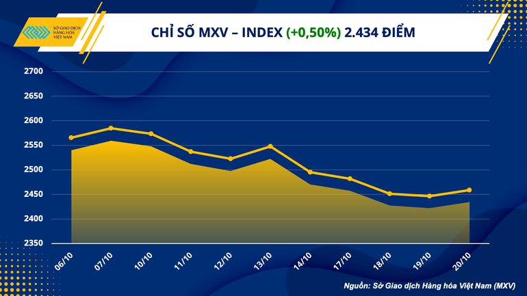 Lực mua gia tăng trên thị trường, đặc biệt là ở nhóm nông sản và kim loại với mức tăng tương đối mạnh của nhiều mặt hàng quan trọng. Trong khi đó, dầu thô chỉ biến động không đáng kể trước một loạt các thông tin trái chiều. Giá trị giao dịch toàn Sở có sự gia tăng nhẹ, đạt 3.900 tỷ đồng, xấp xỉ với mức trung bình trong tháng 10.