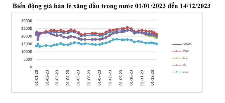 Thị trường xăng dầu thế giới kỳ điều hành lần này (từ ngày 07/12/2023-13/12/2023) chịu ảnh hưởng của các yếu tố như: Tồn kho dầu của Mỹ giảm, lo ngại về tình hình an ninh ở Trung Đông có thể ảnh hưởng đến nguồn cung dầu từ khu vực này, việc các quốc gia đạt được thỏa thuận lịch sử để bắt đầu giảm mức tiêu thụ nhiên liệu hóa thạch trên toàn cầu tại hội nghị COP28…các yếu tố nêu trên khiến giá xăng dầu thế giới trong những ngày vừa qua có biến động tăng, giảm đan xen nhưng nhìn chung là giảm.