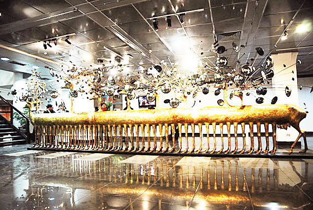 Gia Lâm, sát bờ sông Hồng heo hút gió, xưởng vẽ tạm được những họa sĩ trẻ thuê để đeo đẳng con đường nghệ thuật và cả mưu sinh chờ một vận may trở thành tên tuổi, Trần Đức Quỷ mượn nhờ diện tích của bạn, vuốt khuôn đổ bê-tông cho triển lãm. Bao giờ cũng là cấp tập, vắt chân lên cổ mà chạy cho tới phút cuối, dù định dạng thì luôn thường trực trong Quỷ từ nhiều tháng năm trước. Cái túi, hoặc ý gọn ghẽ hơn Cái túi không đáy, một suy nghiệm mượn từ triết lý nhà Phật “thân như chiếc áo bên ngoài, như chiếc túi da bọc toàn thịt thối”, thêm nung nấu từ những dịp lang thang khắp các lăng mộ vua chúa nhà Nguyễn tại cố đô Huế, Quỷ trình bày ý tưởng, như lệ thường L’Espace luôn và ngay chấp nhận, đồng ý tài trợ, đỡ đầu cho cuộc triển lãm sắp đặt lần thứ VI. Quỷ, cũng chỉ một khiếu nại nhỏ, đề nghị L’Espace bỏ đi tính từ tài năng sau danh từ nghệ sĩ kèm theo tên mình trong thông cáo báo chí phát đi, chỉ còn là nghệ sĩ Trần Đức Quỷ, bởi “tôi là người phàm trần, cũng thích người ta nói mình là thiên tài lắm, nhưng điều đó nó chỉ dính vào tai được một lúc rồi nó lại bay đi. Mình trở về nguyên hình là anh nông dân. Hay nói cách khác, tôi là con quạ, cũng thích mình có bộ lông của loài chim công, nhưng phải là lông mọc ra tự bản thân mình”...