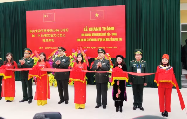 Hai bộ trưởng dự lễ cắt băng khánh thành nhà văn hoá hữu nghị biên giới Việt - Trung.