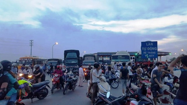 Ùn tắc giao thông tại trạm thu BOT Quốc lộ 5 trong hai ngày vừa qua.