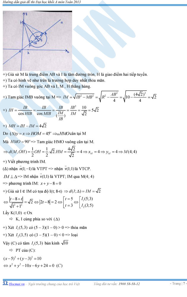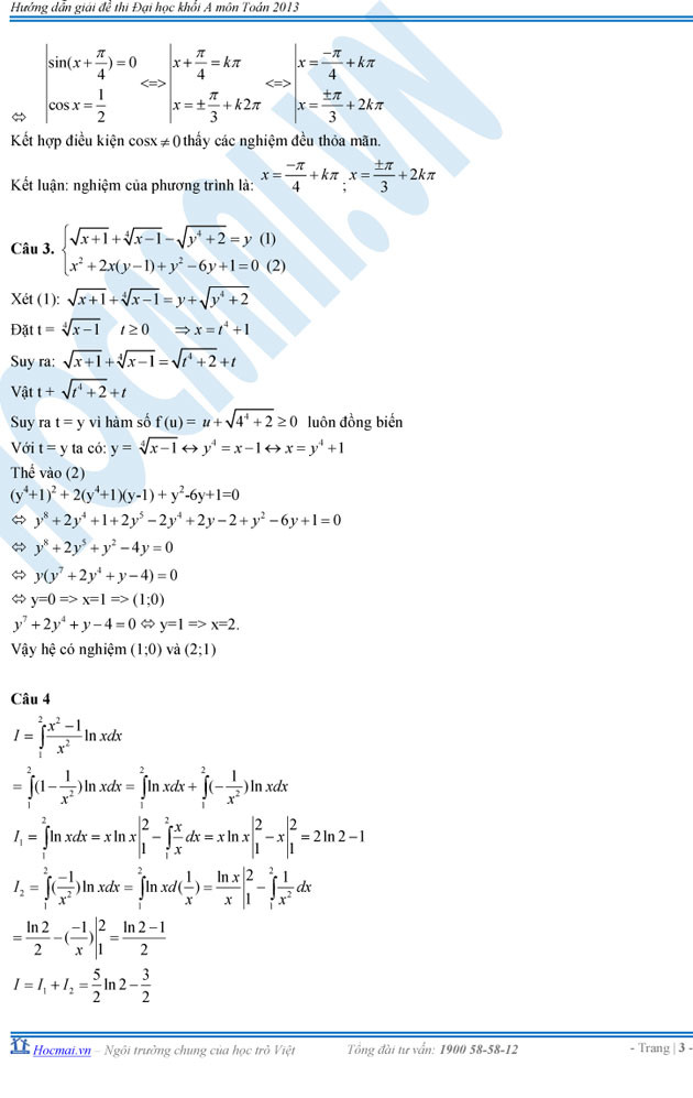 NDĐT – Đề thi môn Toán sáng nay (4-7) được đánh giá là bám sát chương trình và có tính phân loại thí sinh. Nhân Dân điện tử giới thiệu gợi ý giải đề thi môn Toán do các thầy cô của Trung tâm Hocmai.vn thực hiện.