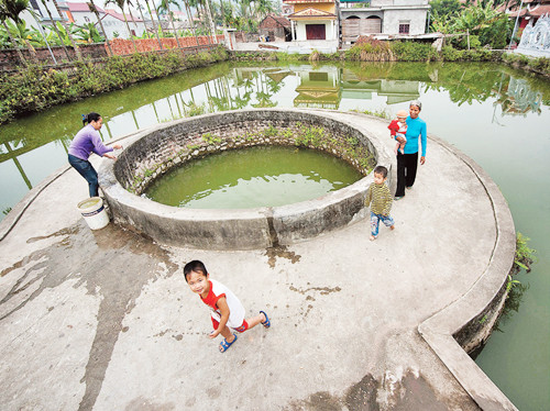 Giếng làng Khánh Tân, xã Sài Sơn, Quốc Oai, Hà Nội thật khác lạ so nhiều nơi bởi bao quanh là ao làng.