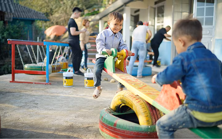 Ðặt chân đến điểm trường Ngải Thầu (phân hiệu của Trường mầm non Dền Thàng, huyện Bát Xát, tỉnh Lào Cai) những ngày này, tận thấy những đứa trẻ nô đùa, chơi bập bênh, xích đu trong ngôi trường mới khang trang, thấy như mùa xuân ấm áp đã cận kề. Ngôi trường mới khánh thành cách đây không lâu với hai phòng học, hai nhà vệ sinh, phòng giáo vụ, nhà bếp... Nhưng với các em nhỏ nơi núi rừng heo hút này điều hấp dẫn hơn cả vẫn là sân chơi với cầu trượt, xích đu nhiều