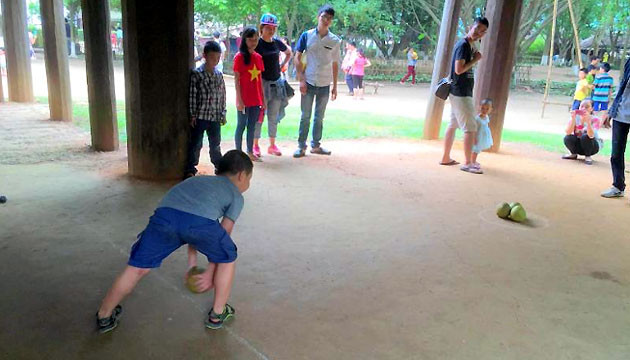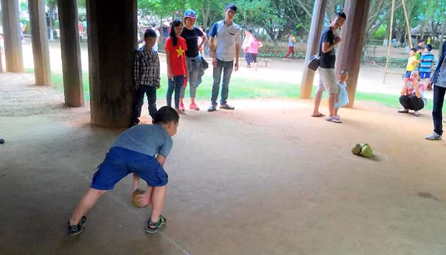 Chơi cướp cờ, kéo co, lăn bưởi, đi cầu tre, đi cà kheo thả đũa vào lọ… tất cả đều được các em nhỏ say mê thích thú. Bởi đây đều là những trò chơi dân gian mà hiện nay các em không được tiếp xúc nhiều và cũng ít có cơ hội được biết đến.
