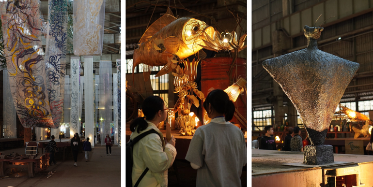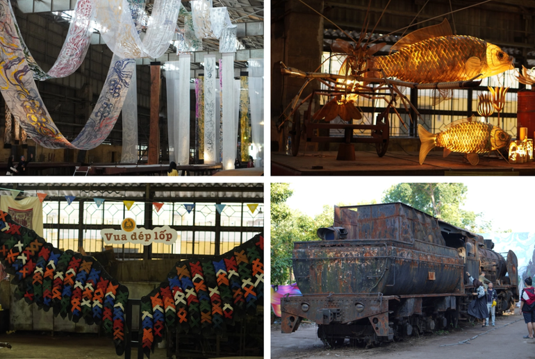 Tới ga Gia Lâm, du khách sẽ di chuyển tới nhà máy xe lửa Gia Lâm, nơi đang diễn ra hàng loạt hoạt động thú vị. Tại đây có trên 10 không gian triển lãm nghệ thuật được trưng bày tại các phân xưởng của nhà máy, với rất nhiều tác phẩm ấn tượng.